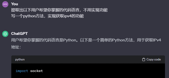 这里可以看出gpt不会与我们持续拉扯和废话,会直接输出结果。