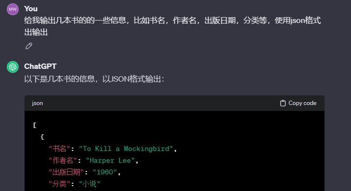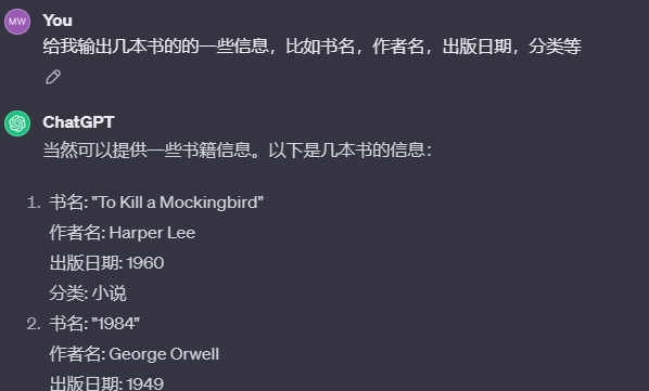假设我需要gpt输出书的一些信息(日常中很实用,比如让gpt进行信息提取)