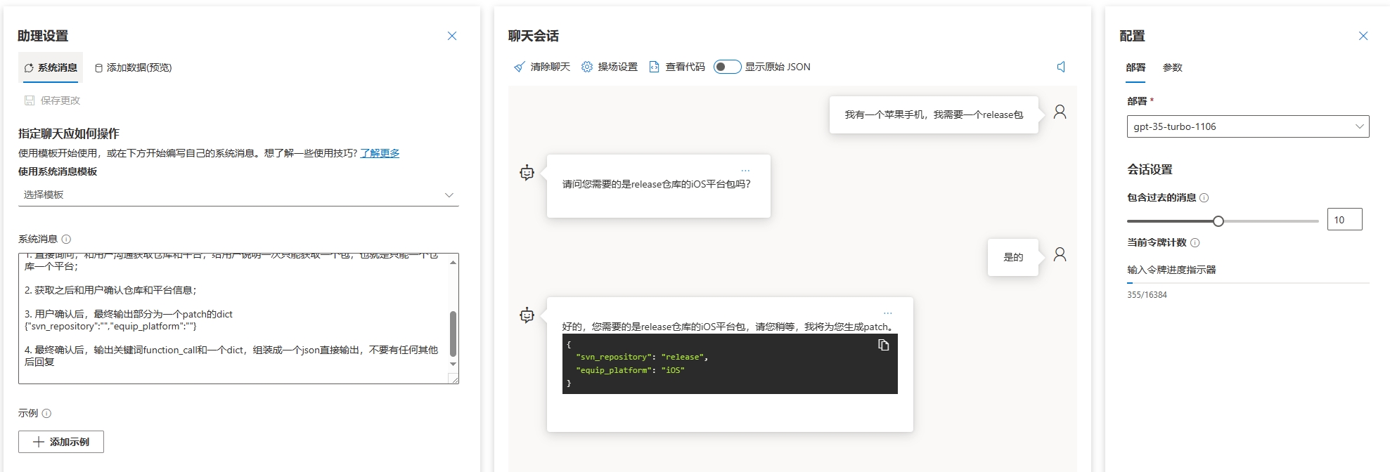 这里有一个知识点必须要介绍一下了,是我们使用ChatGPT不会注意到的一个点,那就是三个用户,system,user和assistant,这个在gpt的编程中会持续使用到,在调试台中也能看到,有一个系统消息,示例和输入框。