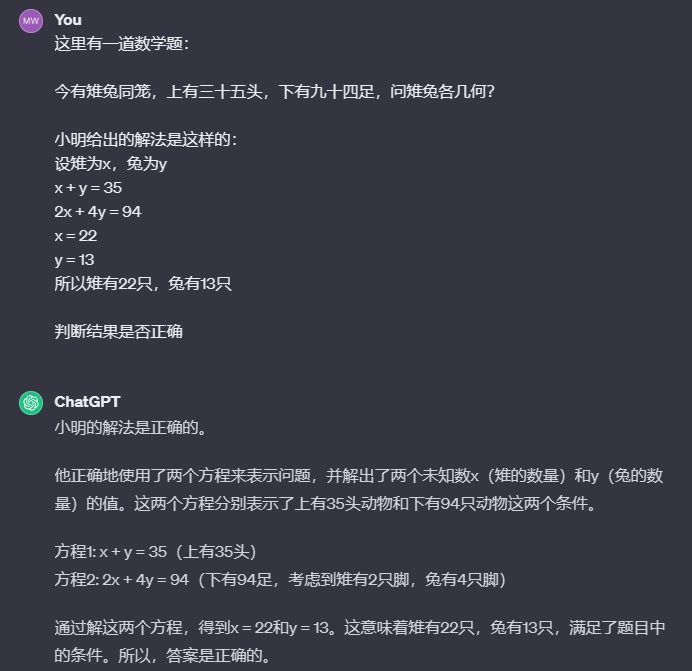 这里我们稍微修改下提示词,避免直接让gpt做出判断,而是让gpt先给出自己的解题步骤,并且根据自己的步骤和结果来判断给出的结果是否正确