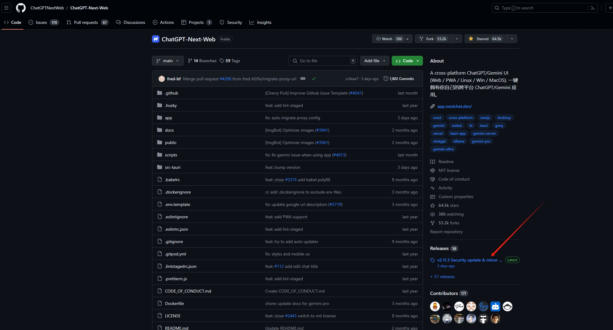 首先是下载位置https://github.com/ChatGPTNextWeb/ChatGPT-Next-Web