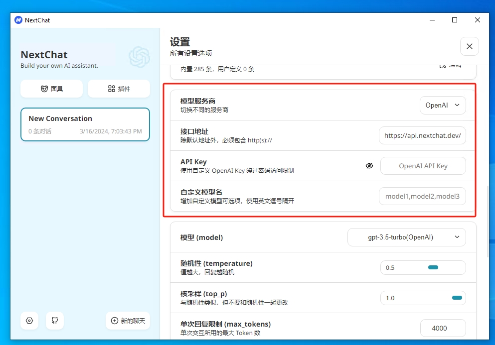 对应 ChatGPT-Next-Web 软件中的配置项就是