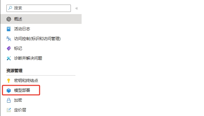 其实也比较好找,懒点的可以这么办,首先在 Azure 中找到如下图所示的模型部署,点进去然后跳转到模型调试界面