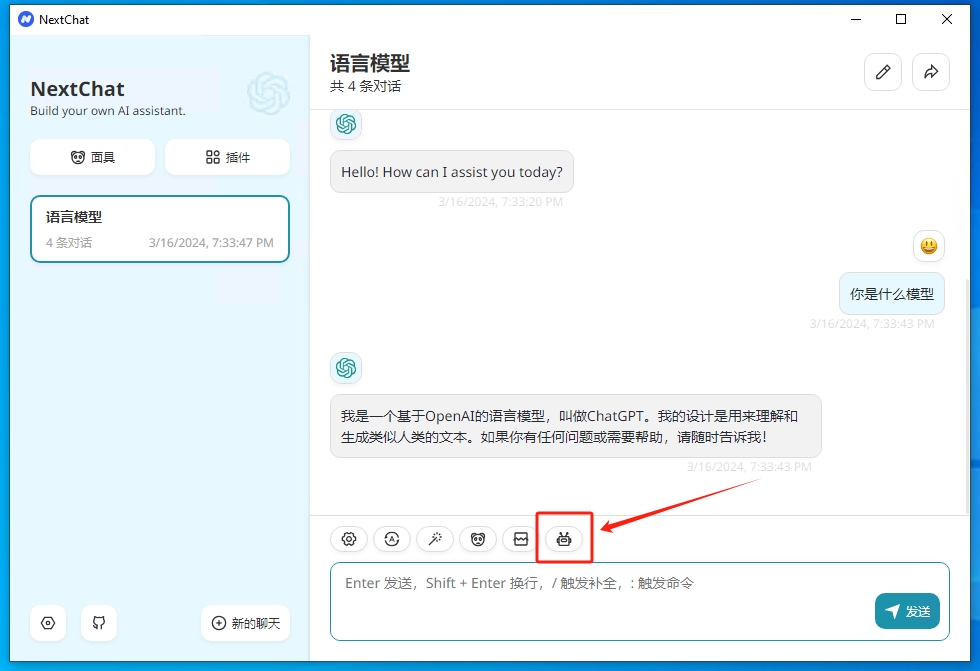点右上角 x 关闭设置之后,即可开始与 ChatGPT 的对话: