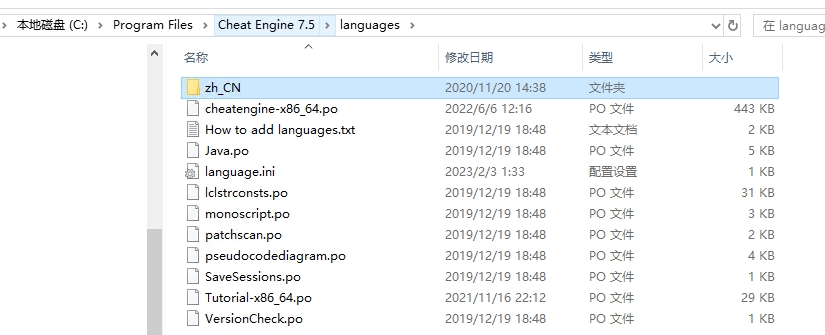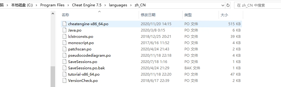 打开软件安装目录,一般为:C:\Program Files\Cheat Engine x.x