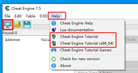 当然如果不小心关闭了教程或者后面使用的时候还想学习,可以在CE中直接运行如下图选项即可:(两个都行,没有区别)