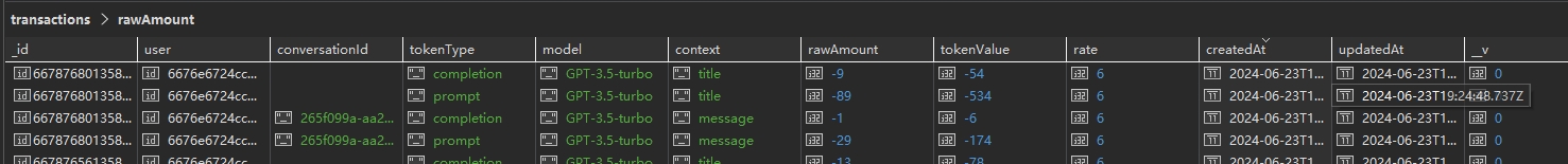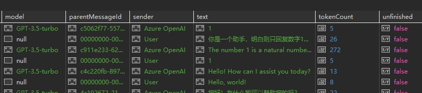 | 这里我们用提示输入1和模型返回1来测试,发现LibreChat中数据库都会记录tokenCount为5,也就是会计算< | im_start | > 和 < | im_end | >的4个token |