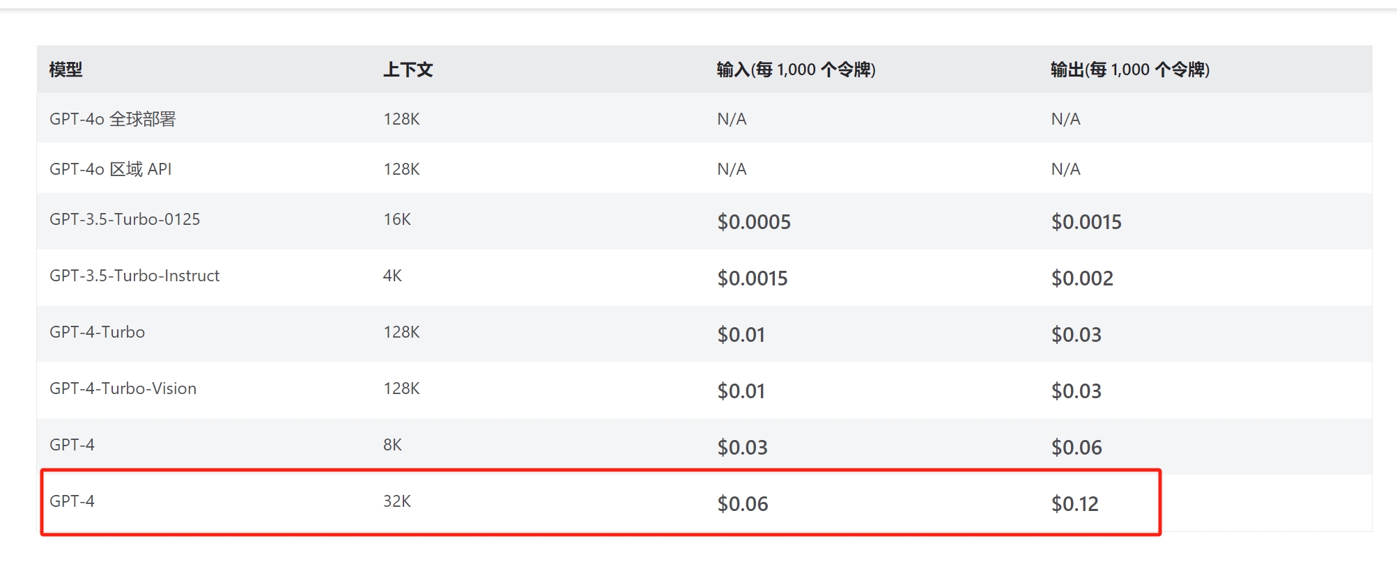 prompt价格$0.06/1000token,completion价格$0.12/1000token