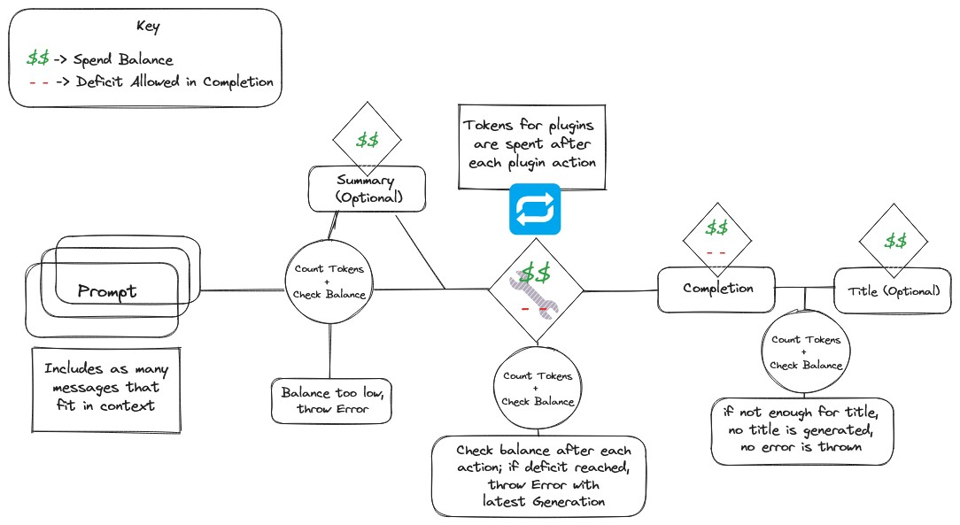 具体计算的细节,首先需要了解LibreChat中实际消耗token具体计算逻辑和包含哪些内容范围,然后再了解项目作者是怎么把积分转换成token的,以及怎么管理和配置用户的积分