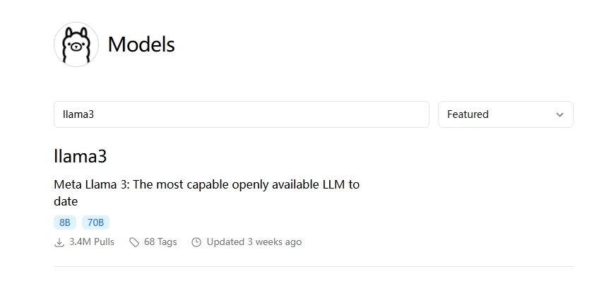 对应模型会有很多详细信息,比如笔者需要的llama:3b,对应的命令也会有提示