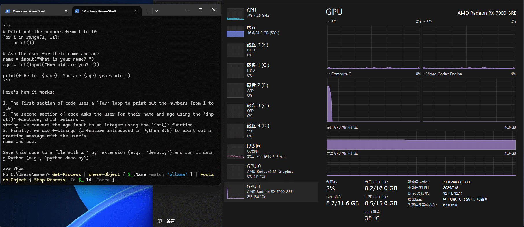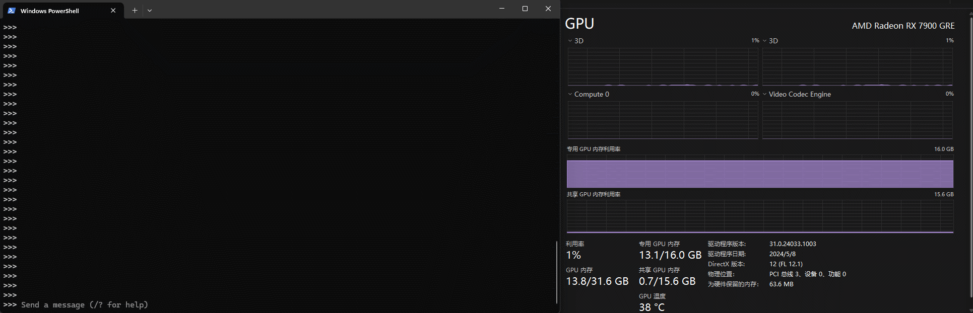 笔者这里是7800x3d配7900GRE,执行8b模型的速度还是十分快的: